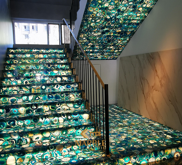 Looking for a colourful staircase in your home to make it look vibrant? Considering semi-precious stones would never go wrong. With a unique design and pattern, a luxurious semi-precious staircase can highlight the interior of your home or office.